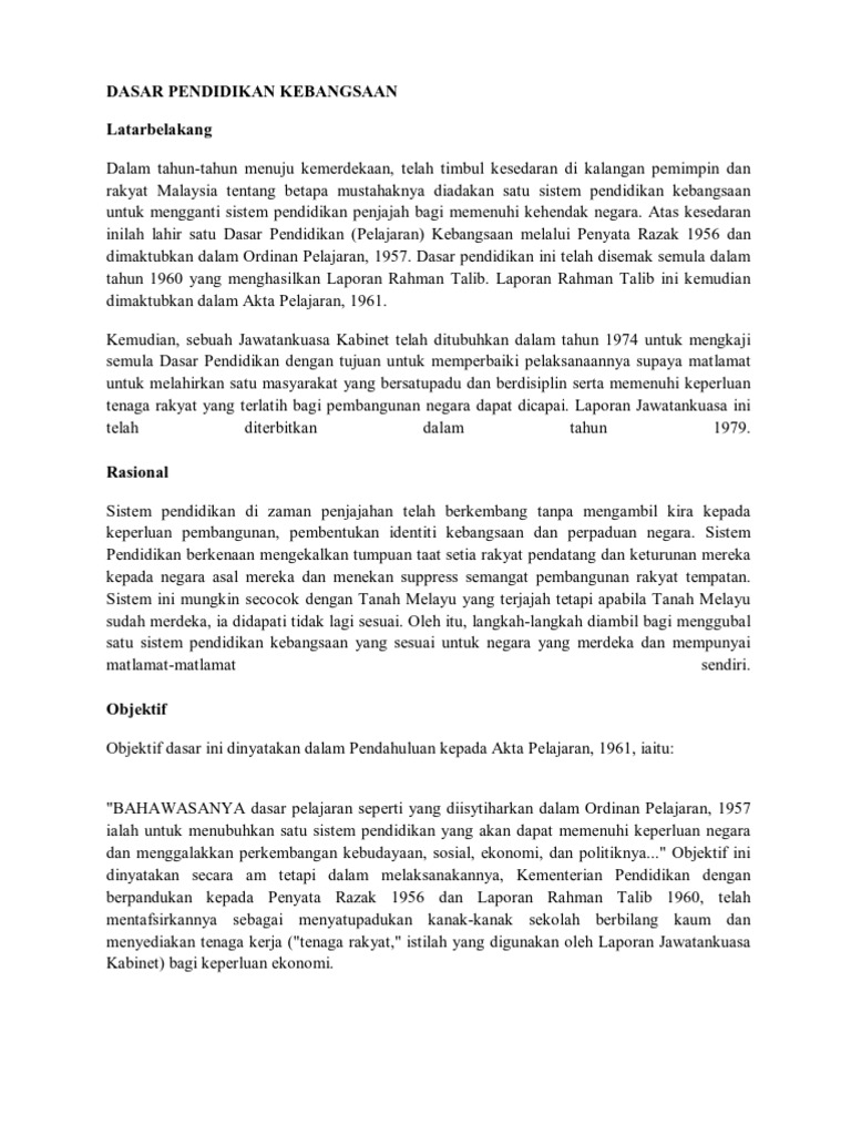 Contoh Dasar Pendidikan Kebangsaan Pdf